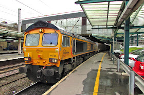 66030 arrives from the north with the regular Friday 6K32 wagon repair turn from Warrington Arpley (10:53) to Marcroft at Stoke (now Axiom Rail).