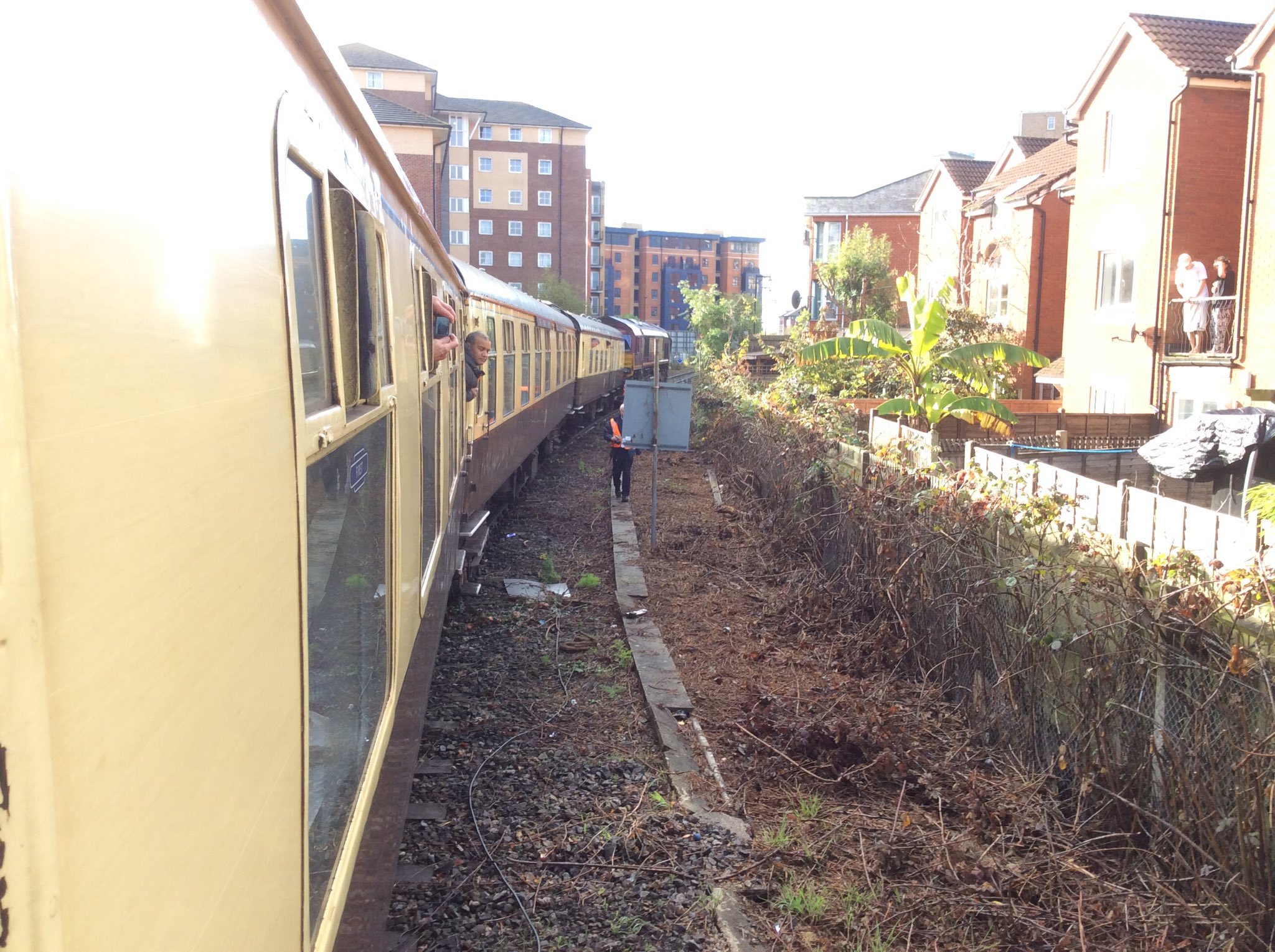 I was planning three location coverage of this UK Railtours tour, but learned, while in my first position at Totton Yard, that the leading two coaches of the Riviera Mk 1 set became derailed at about 10:13 between Chapel Crossing and Canute Road in Southampton, on the Network Rail branch to Eastern Docks.